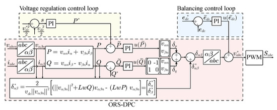 where , are the instantaneous power errors, as well as represent the corresponding PI controllers. Consequently, with the ORS-DPC technique, the instantaneous active and reactive powers are regulated to the equivalent point effectively. The detail of this method can be found in [33] and [34].
