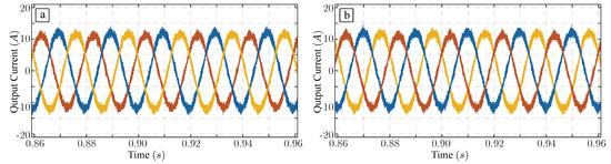 NPC ac currents for a 5.3 kW load. (a) PI controller. (b) HGO-Adaptive STA proposed controller.