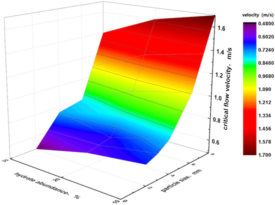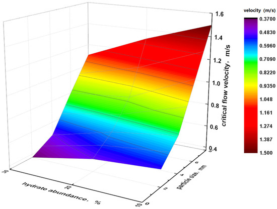 The critical flow velocity plate of different hydrate abundance and particle size under arc expansion.