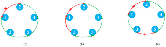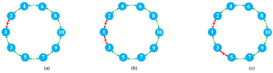Communication failure between agents may happen in the operation of MGs, and it has an unexpected impact on the power sharing outcomes of the DGs. Hence, it is necessary to evaluate the impact of communication link failure on the performance of the proposed method. In this case, three types of communication link failure are assumed as shown in Figure 14. The three types of communication failure are typical and they can represent all the possible common failures in the ring topology.