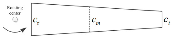 where , and are the lengths of the tip chord, root chord and mean aerodynamic chord, respectively (as shown in Figure 8).