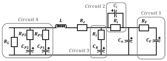 Subsequently, the software Statgraphics Centurion® is used to determine, by statistical analysis, the relation of all these elements with the voltage (Vbias) of the SC. Statgraphics Centurion® is a statistics software that performs and explains the basic and advanced statistical functions [36]. Other softwares can be used to calculate the variation of the electrical parameters with Vbias (SPSS®, S-PLUS®, MINITAB®, MATLAB® or simply EXCEL®). Statgraphics Centurion® software is used against other options, but the results obtained with any of the mentioned softwares are very similar. From the analysis carried out, it has been proved that all electrical circuit parameters, to a greater or lesser degree, have a quadratic relationship with voltage. However, the capacitance of the SCs (capacitors of the electrical circuit) has a greater dependence on the voltage than resistance and inductance have. The model equation to calculate any parameter of the electrical circuit in function of the voltage is A x2 + B x + C. The values of these coefficients for each element of the electrical circuit are shown in Table 4.