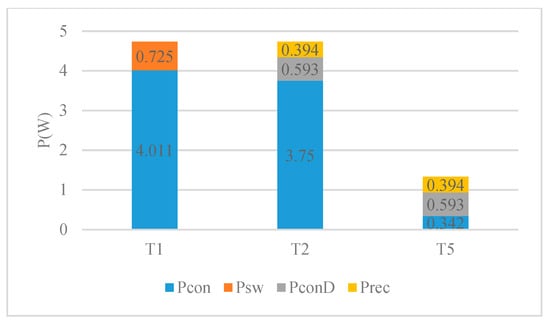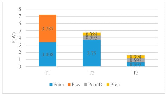 Loss distribution of T1, T2, and T5 in SiC-only topology.