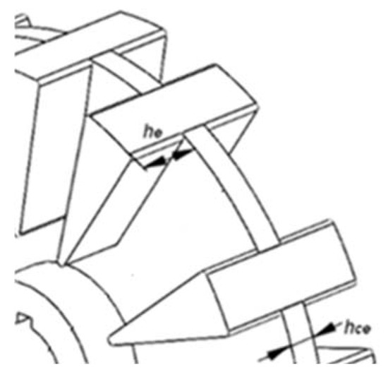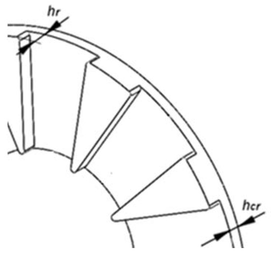 The thickness of the rotor yoke, hcr, is determined considering that the yoke area is approximately half than the rotor pole area in order to reduce mass and despite this increase the flux density in the rotor yoke, therefore the yoke area can be expressed by: