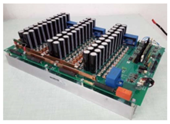The AFSRM must develop a torque of 80 Nm at 335 rpm and provide a constant power of 2.8 kW between 335 rpm and 1215 rpm. Due to the machine has to be placed inside a wheel of 13″ the maximum external dimensions were limited to a diameter of the motor frame of 308 mm and an axial length of 116 mm. The battery voltage was 96 V and the AFSRM was controlled using the SRM controller shown in Figure 9 and described in [20].
