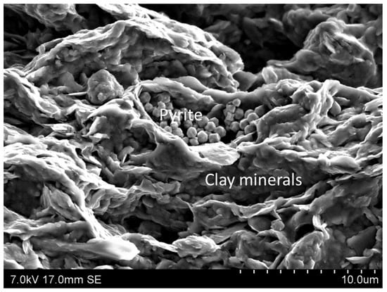 The complex and wide variety of composition types among shales can be attributed to their different sources (i.e., different rocks, reliefs, and climate), the degree of weathering (decomposition from the source rock and during transportation), the end-product of weathering and chemical interactions, and biochemical additions [26,35]. Moreover, the alteration of some clay minerals occurs due to chemical diagenesis with an increase in burial depth, creating greater complexity in shale composition. The composition of shale is dominated by clay minerals, which are mostly hydrated aluminium silicate with some replacement by iron and magnesium. Typical minerals in shale include (e.g., [26]) the following: