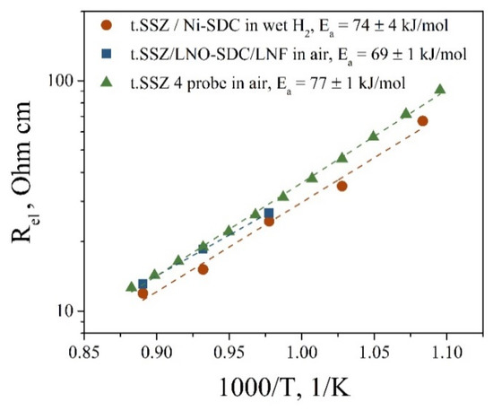 - Omar, S.; Najib, W.B.; Chen, W.; Bonanos, N. Electrical Conductivity of 10 mol% Sc2O3–1 mol% M2O3–ZrO2 Ceramics. J. Am. Ceram. Soc. 2012, 95, 1965–1972. [Google Scholar] [CrossRef]