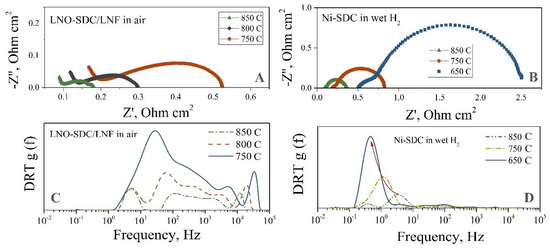 - Antonova, E.P.; Khodimchuk, A.V.; Usov, G.R.; Tropin, E.S.; Farlenkov, A.S.; Khrustov, A.V.; Ananyev, M.V. EIS analysis of electrode kinetics for La2NiO4 + δ cathode in contact with Ce0.8Sm0.2O1.9 electrolyte: From DRT analysis to physical model of the electrochemical process. J. Solid State Electrochem. 2019, 23, 1279–1287. [Google Scholar] [CrossRef]