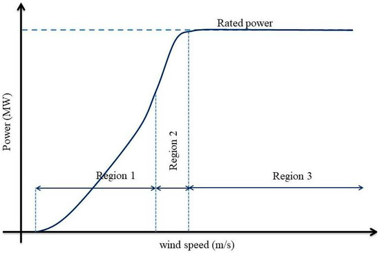 Figure 4. The torque controller is enabled when the wind speed is less than the rated wind speed for region one and region two, where the rotor angular speed is controlled to optimize the aerodynamic efficiency by varying the generator torque (