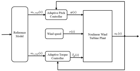The adaptive control model is designed and implemented on the 2 MW and the 5 MW wind turbine models using MATLAB/Simulink software to analyze the performance and the stability of the higher-order dynamic system of the wind turbine. It is important to note that the same compensator model is used for the 2 MW and the 5 MW wind turbine plants. The simulation is done to verify the rotor speed tracking performance of the designed adaptive control strategy. The wind turbine plant adaptive controller block diagram is as shown in