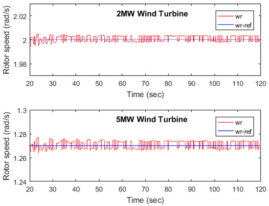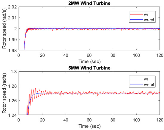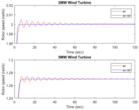 Figure 14. The reference model and the compensator model for this case study are the same as the 2 MW and the 5 MW wind turbine plants.