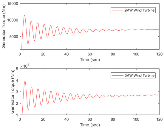 It should be noted that only the values of the parameters change for 2 MW and 5 MW wind turbines, and the transfer functions remain the same. The same transfer function is used for the case study in