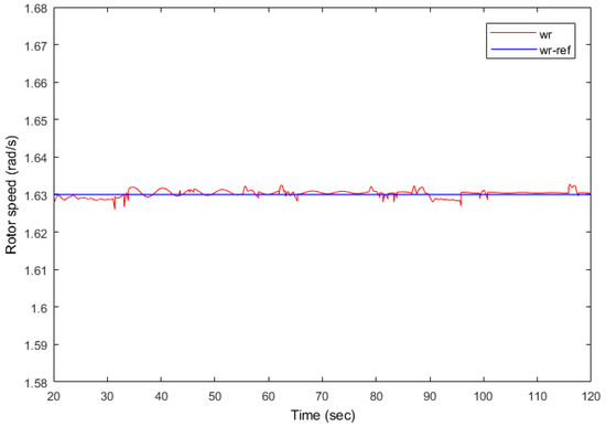 The rotor speed tracking of the wind turbine in the case study is given in