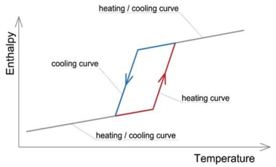 37] assumed a sloped transition curve between the heating and cooling curves but a horizontal transition for the sub-cooling effect. Any change in the system temperature during the transition phase should obviously be associated with a change in enthalpy. The method of transition in the form of a horizontal line adopted in the article is a simplification.