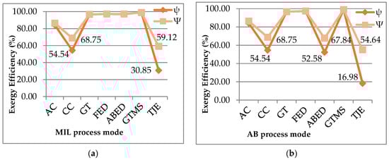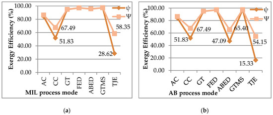 (a) MIL process mode exergy efficiency; (b) AB process mode exergy efficiency.