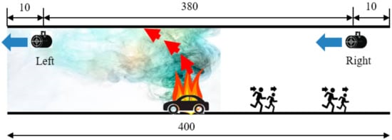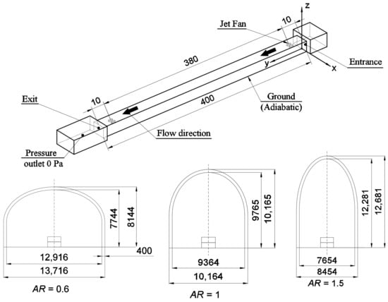 - Lee, S.R.; Ryou, H.S. A numerical study on smoke movement in longitudinal ventilation tunnel fires for different aspect ratio. Build. Environ. 2006, 41, 719–725. [Google Scholar] [CrossRef]
