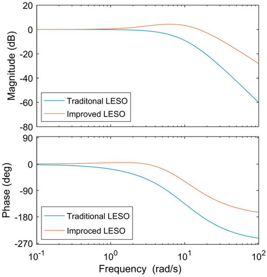 is a second-order system, it can be proved that there is a contradiction between response speed and overshoot in time domain. In frequency domain, has the characteristics of phase lag and amplitude attenuation with the increase of frequency, which shows that the disturbance observation performance of traditional LESO is defective.