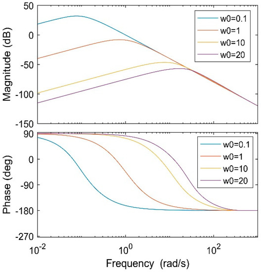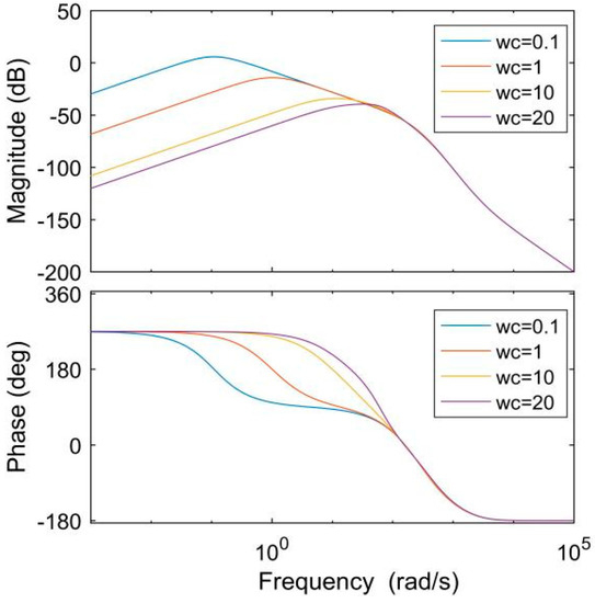 Compared with Equation (32) and Equation (28), the most obvious change is the addition of a zero point. In the control theory, it can be understood as follows: in the time domain, the function of zero point is to reduce the peak time, speed up the response speed of the system, and the closer the zero point is to the virtual axis, the more obvious the effect is; in the frequency domain, a leading network is connected in series, which reduces the slope of amplitude decline and the degree of phase lag, and improves the stability of the system.