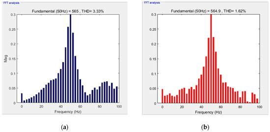 Comparison of harmonic distortion rate of grid-connected current under two control modes (a) Analysis of harmonic distortion rate under traditional LADRC control; (b) Analysis of harmonic distortion rate under improved LADRC control.