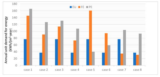 - —annual demand for final energy supplied to the analyzed system in a building, (kWh/year)