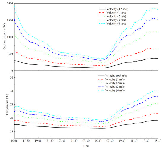 - Both outlet temperature and cooling capacity of the UAT system increase with the increase of tube diameter and air velocity. The increase of tube diameter and air velocity can improve the system’s cooling capacity. However, the decrease of tube diameter and air velocity will result in a more stable and lower outlet temperature, which can reduce the cooling load for indoor thermal comfort