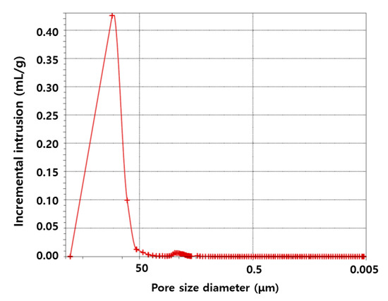 Figure 3 shows a scanning electron microscopy (SEM) image of the metal foam. The SEM image and mercury (Hg) porosimetry data plotted in Figure 4 show the pore structure and uniform pore distribution of the metal foam.