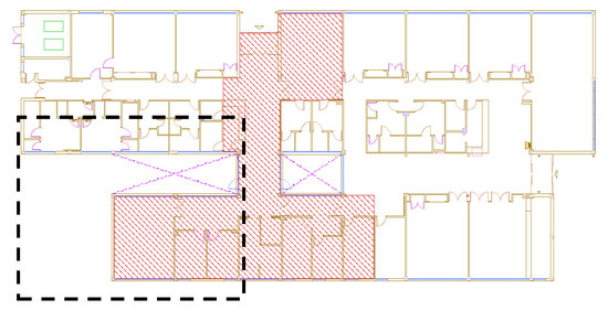 Figure 5 displays the plan view of the building, denoting the roof area where the green roof was installed by the dotted line. The building area under controlled conditions with green and conventional rooftop was 280 m2. Figure 6 shows the green roof already installed.