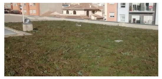 The application of rooftop gardens onbuildings, or green roofs [1], which introduces a layer of vegetation, growing media and an additional drainage/auxiliary layers, has evidenced to improve storm water management [2,3], but this is not the only positive outcome resulting from these systems. They also produce positive impacts in many other aspects [4], such as reducing the heat island effect by decreasing the temperature in main city centers [5,6], ameliorating air pollution [7] and reducing energy consumption of buildings [8,9,10]. In relation to this last aspect, roofs are a critical part of the building envelopes, since they are highly susceptible to solar radiation and other environmental changes. Thereby, they have a significant influence on the indoor comfort conditions of the occupants. Roofs account for large amounts of heat gains and losses, especially onone-floor buildings with large roof area. In these cases, green roofs improve the performance of the building’s energy behavior by either decreasing the heat load during the winter period [11] or the cooling requirements during summer time [12]. Green roofs also reduce the temperature fluctuation of the roof membrane along the year [13] and, consequently, increase the efficiency of photovoltaic (PV) systems installed on the roof [14]. In summary, a green roof is a good alternative to improve sustainability in urban areas by reducing energy consumption, heat stress, air pollution and CO2 emissions.