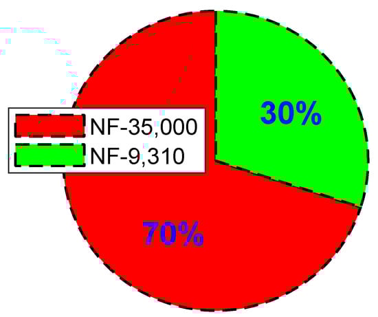 The reduced model was obtained by skipping coefficients corresponding to the interactions of real modes as explained in Section 3. Table 1 shows that the studied system has 6 real modes. From (18), reducing N by 6 leads to a total of 9310 coefficients which translate to skipping 25,690 coefficients and 25,690 coefficients since, h-coefficients are consequences of C and D coefficients (see (5)). For example , , are not computed since they involve real mode combinations. However, , , are computed since they involve only oscillatory mode combinations. The NF solution obtained with this reduced model shall be referenced as NF-9310 against the full model referenced as NF-35,000. The computation of the remaining coefficients is easy since one just has to solve a set of linear equations (please see [,]).