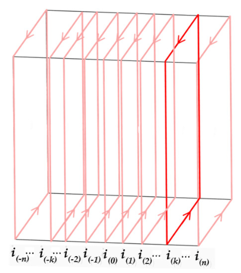 Modeling of a PM shown in Figure 3b with the Amperian model by using distributed currents, where i(k) is the k-th current.