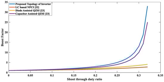 The proposed topology outperforms the previous techniques and provides an excellent boosting capacity at a very low ST duty ratio with the high modulation index. Table 4 shows the values of the boosting factor against the different values of the ST duty ratio and modulation index.