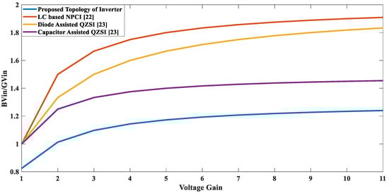 In Figure 19, a graph is plotted between BVin/GVin versus the voltage gain, showing clearly that the proposed topology offers better results as compared to previous topologies.