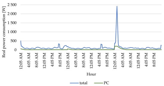 The estimation of energy consumption for selected key demand sources would potentially enable the implementation of energy management systems without the need to install individual meters for each consumption point. This potentially means not only lower costs for the energy management system but also greater opportunity to increase the popularity (and application) of the systems on the market. Effective (precise) analyses may concern both individual households (end users of energy) []–as presented in this study– and the electricity consumption of entire buildings (Liu et al. [] used the spatiotemporal pattern network (STPN), Henriet et al. [] showed differences in electricity consumption patterns between residential and commercial buildings pointing out higher periodicity for the latter).