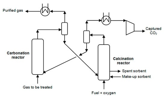| Decarbonization unit employing a Ca-based sorbent system [19] | Natural limestone as calcium-based sorbent Carbonation/calcination reactors: 540–615 °C/825–975 °C 90% flue gas decarbonization rate (pre- and post-combustion) Oxy-fuel combustion system to provide heat for sorbent regeneration Power consumption for oxygen production unit: 200 kWh/t |