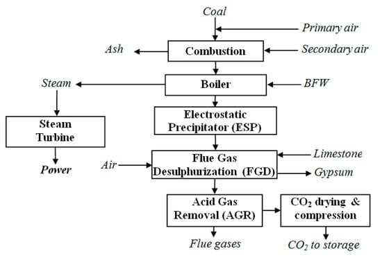 | Super-critical power plant [17] | 290 bar/582 °C and two reheats at 75 bar/580 °C and 20 bar/580 °C 95% NOx removal yield by selective catalytic reduction unit 98–99% SOx removal yield by wet desulphurization unit |