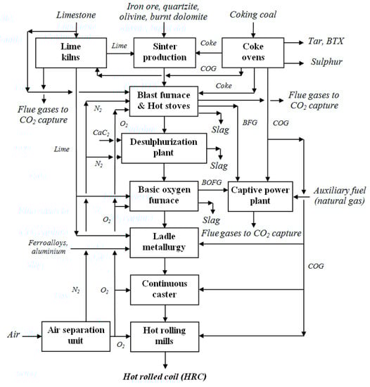 - International Energy Agency—Greenhouse Gas R&D Programme. Iron and Steel CCS Study (Techno-Economic Integrated Steel Mill); Report 2013/04; IEAGHG: Cheltenham, UK, 2013. [Google Scholar]