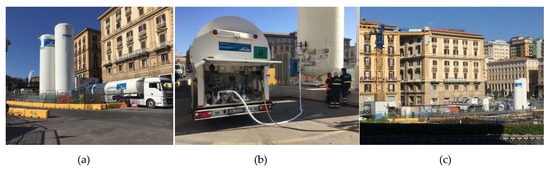 An overview of the nitrogen feeding procedure and system used is reported in Figure 1, which reports the truck and tanks at the construction yard, and the loading phase of liquid nitrogen into the tanks.