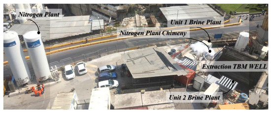 Figure 2 shows an overview of the construction site, where it is possible to see the nitrogen plant and the two brine refrigeration units. The nitrogen feeding system works by gravity. The brine is refrigerated by one unit, while the second is used as back up in case of the failure of the first one.