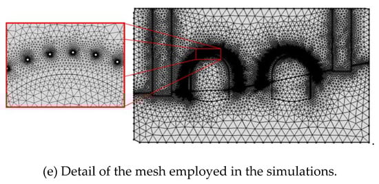 A mesh sensitivity analysis has been carried out in order to obtain grid-independent numerical results. A domain of 20 × 25 m2 has been considered. All the computational grids are made by triangular quadratic elements, and are refined near the freezing probes (Figure 9).