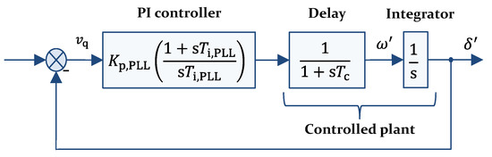 Grid-feeding PV systems are synchronized with the rest of the microgrid using PLL [35,39]. The block diagram of the PLL comprising a PI controller and a controlled plant is illustrated in Figure 6. In the steady-state, the voltage signal is equal to zero.
