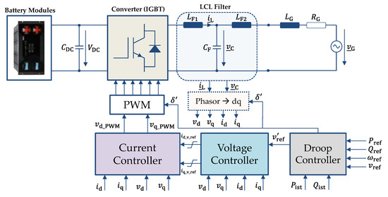 Block diagram of grid-forming BSS with corresponding controllers, according to [36,42].