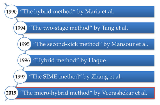 Due to a discrepancy in the profiles of kinetic energy (KE) and potential energy (PE), the new hybrid technique was improved by adjusting the TEF for microgrids [20]. In [20] the micro-hybrid method (the improved new hybrid method) was verified and applied in a stand-alone microgrid with three DGs. Furthermore, quantitative TSA was performed in off-grid DG-based microgrids—without inverter-based systems such as PV and BSS as well as dynamic loads—for different coupling degrees by considering a short-circuit location [20].