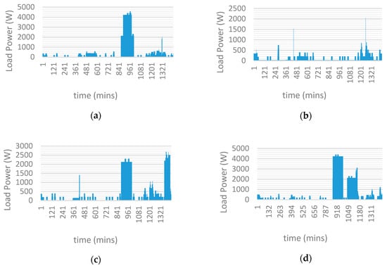 (a)–(d) Simulation result: load profiles of four common samples with four different load profile types.