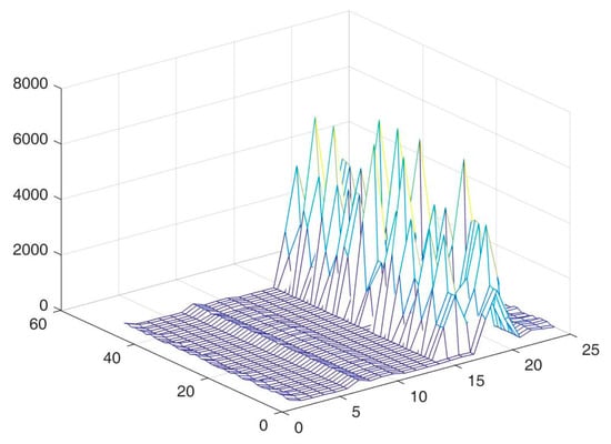 Characteristics of electrical consumer appliances of a total of 76 residential houses were collected using a questionnaire in Golgouah, Mazandaran, Iran. All meters of these customers were tested and evaluated prior to the measurements. All of these subscribers are powered by a 20/0.4 kV-160 kVA pole-mounted substation. A TDL104 data logger was used to measure these customers’ consumption and extract the load behavior curve. In 30 min time intervals, the information of the instantaneous active power, the instantaneous reactive power, the instantaneous voltage and the average consumed energy were measured for a total of 82 customers [49]. The results obtained in the measurement are used to validate the proposed model. In order to obtain homogeneous and analytic information, it has been attempted to perform measurements on feeders with similar welfare levels. For this purpose, a three-dimensional map of the load density of domestic loads was implemented in the geographic information system (GIS) for the city of Galougah (Figure 6) [50]. The specifications of the feeder measured are given in Table 1.