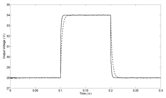 The proposed voltage regulation scheme was next applied to a 24 V∼36 V buck converter. The parameters of DC-DC buck converter are shown in Table A1 in Appendix A, and the controller parameters were chosen as