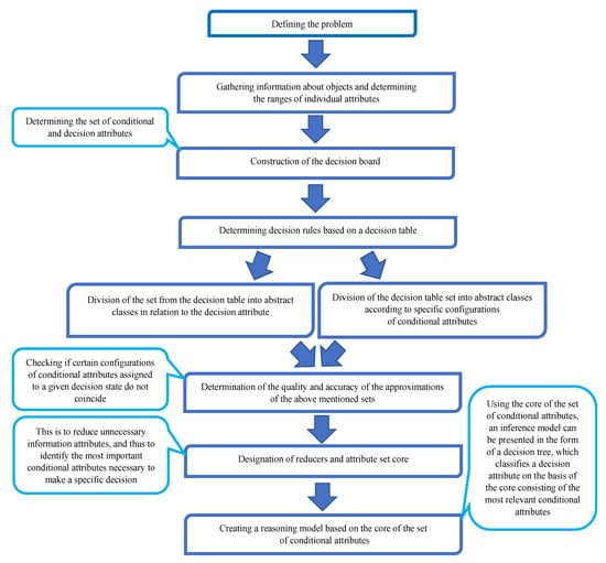 Diagram for building of a model of inference based on the core of a set of conditional attributes using the theory of rough sets.