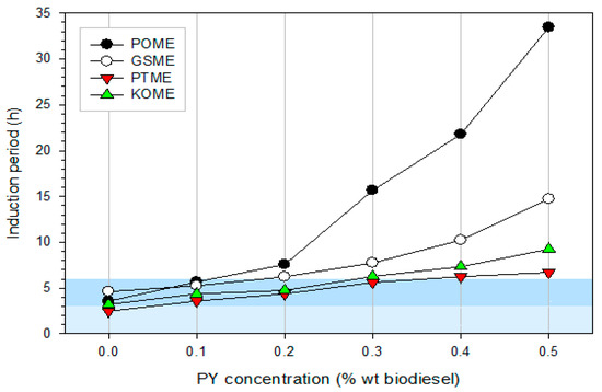 Effects of different pyrogallol (PY) concentrations on the oxidation stability of biodiesel.