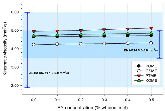 Effects of different PY concentrations on the kinematic viscosity of biodiesel.