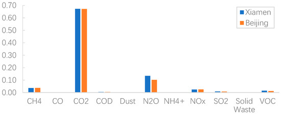 Based on the calculation method mentioned above, per capita energy consumption level of residents in Xiamen and Beijing were calculated based on China’s Yearbook. The environmental costs of the two case studies are shown in Figure 2, Figure 3, Figure 4 and Figure 5.