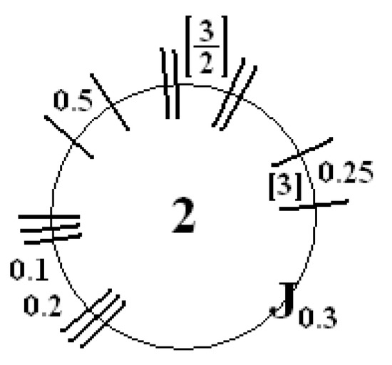 The types of lines are specified, which differ in line functions (where i is the number of nodes, from which line function “was called”). These functions are defined in the remaining part of the paper, and their connections with scheme designations are described in Table 3. Line functions will be used in both transition and measurement functions. If anywhere, occurs (e.g., in Equation (17)), it is assumed that the first type of line function should be used, and all line parameters are the default.